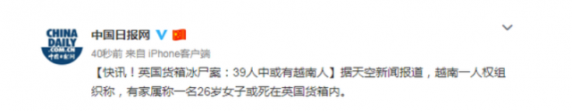 但据中国大陆媒体《中国日报》报道,英国天空新闻(Sky News)报道称,越南有家属表示,一名26岁越南女子或死在这部英国货柜车内。