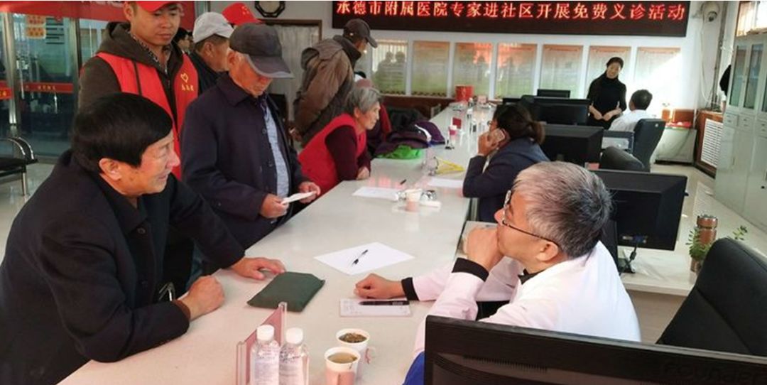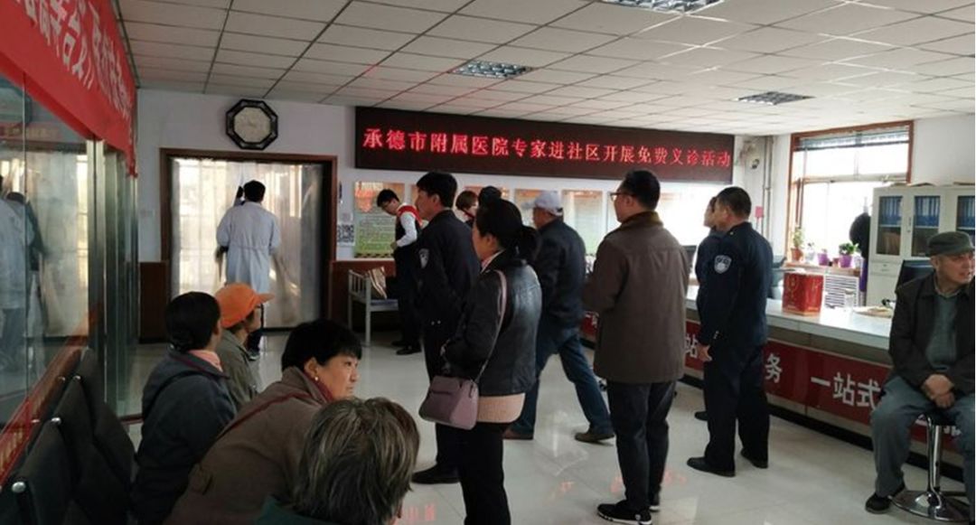 黑山社区联合驻地单位承德银行邀请承德附属医院专家为居民进行免费义诊。为社区居民普及健康知识理念。