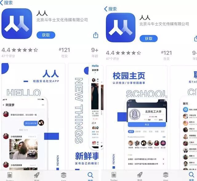 曾经火遍全国的“校内”人人网宣布回归据消息称,App Store上线了全新的“人人”App1.0.1版本。该App的开发者为北京斗牛士文化传媒有限公司,即去年10月份出价6000万美元收购人人网社交及直播等业务全部的多牛传媒。 蓝白色界面、校园实名制、各大校园主页……无论是风格还是实用功能的设计都在告诉用户:那个人人网回来了。
