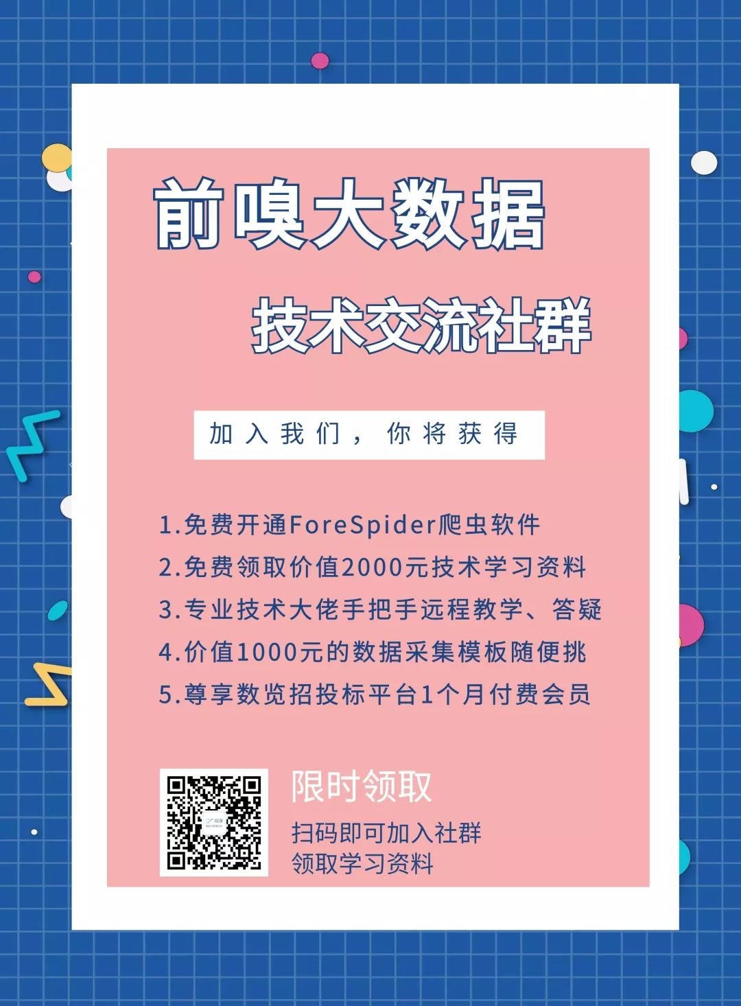 ①内含行业咨询、爬虫教程、数据资料等多项知识合集②扫码即可免费领取,还可加入技术交流社群,众多优秀前端、后端技术大佬为您答疑解惑▼
