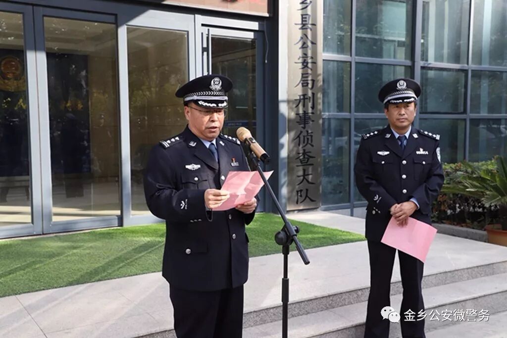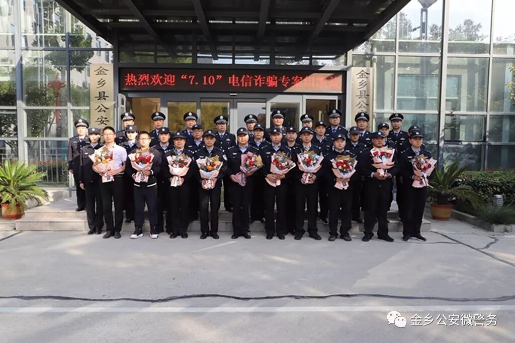 10月26日下午,金乡县公安局隆重举行“7.10”电信诈骗专案民警凯旋欢迎仪式。副县长、公安局长马琨生参加活动并讲话。