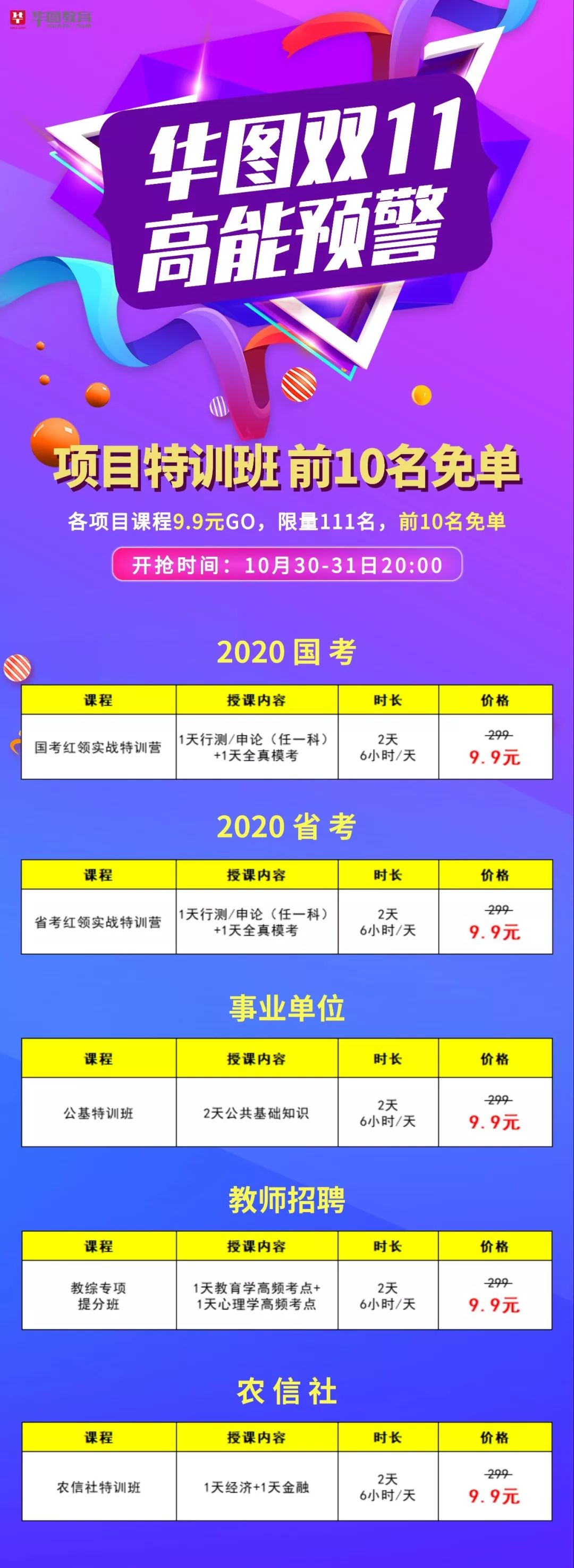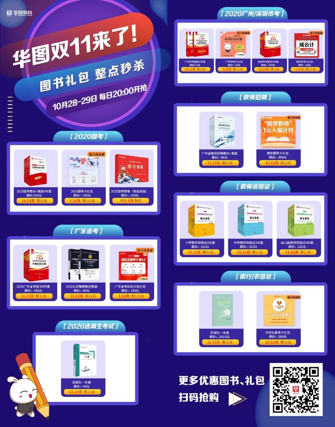 10月28-29日,每日20:00开抢狂欢不止打折,更有免单骨折图书低至11.11元备考大礼包低至1.11元国考网红密卷,砍价0元获取