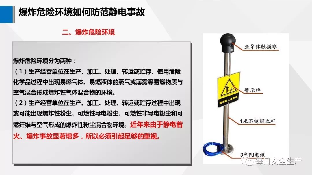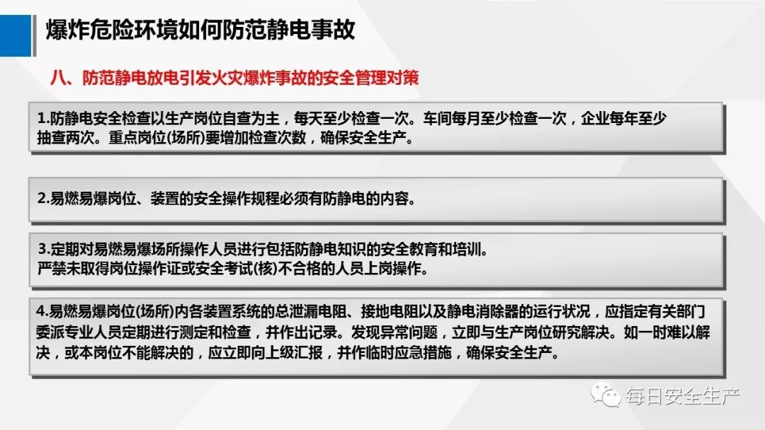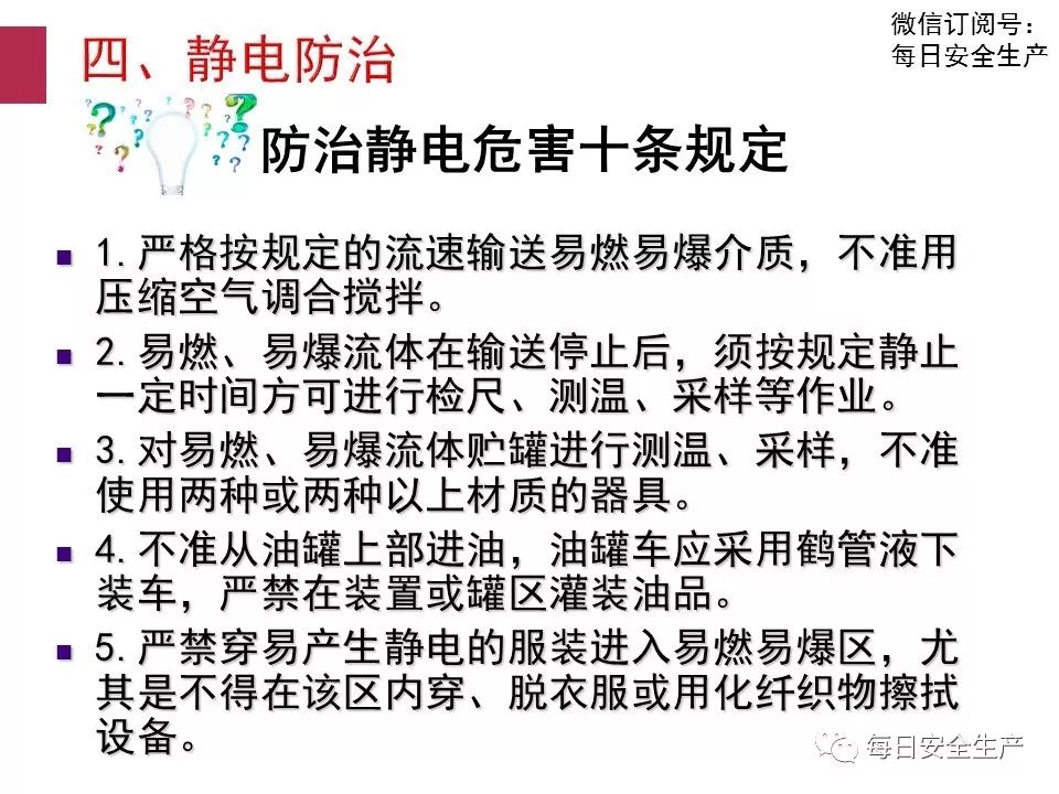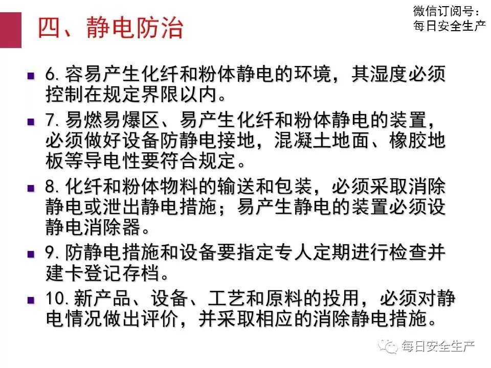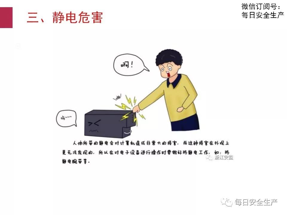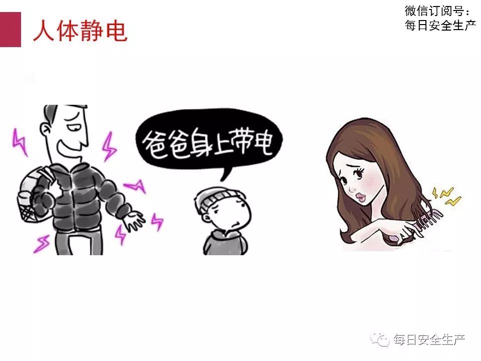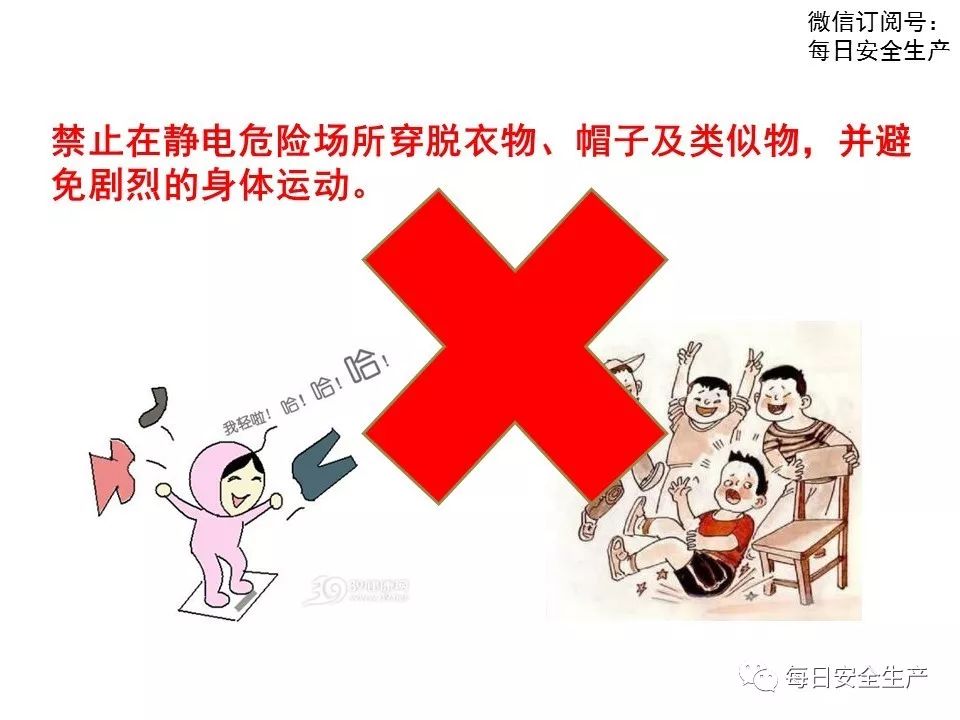 2.不要采取拍打衣物、用化纤梳子梳头这一类易产生静电的不安全行为。