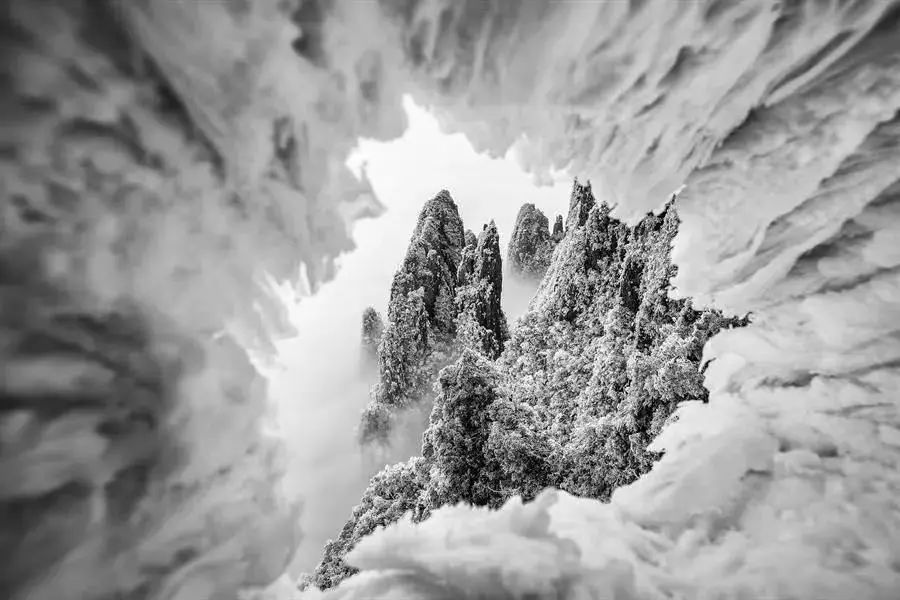 再昂首环顾四周,山峰巨壑象洪峰海浪一样,直奔心间。