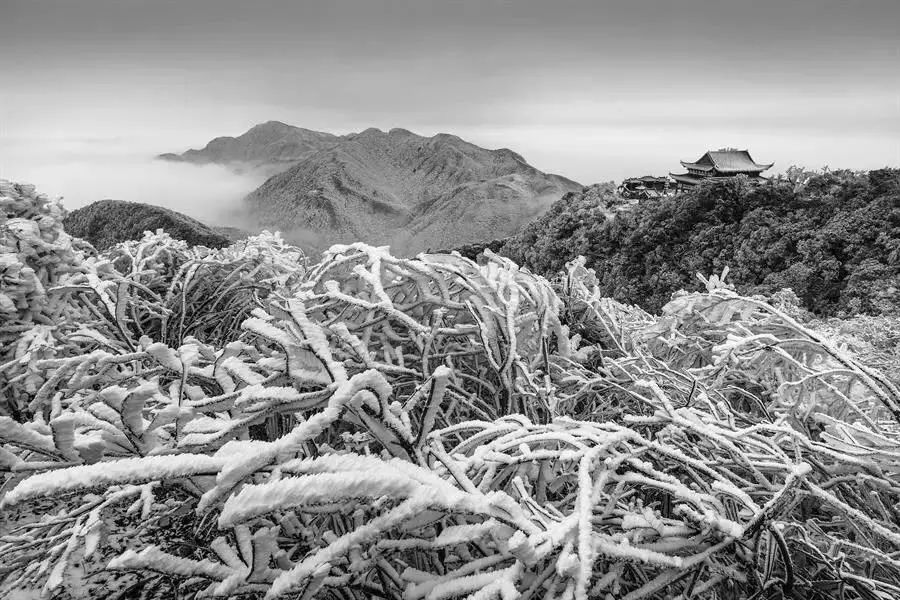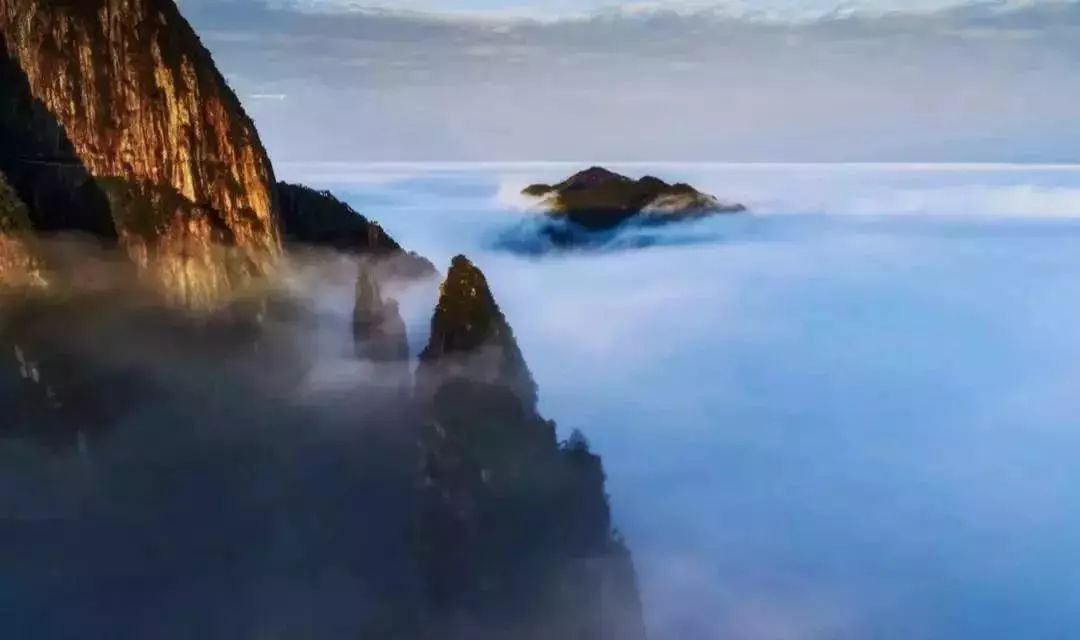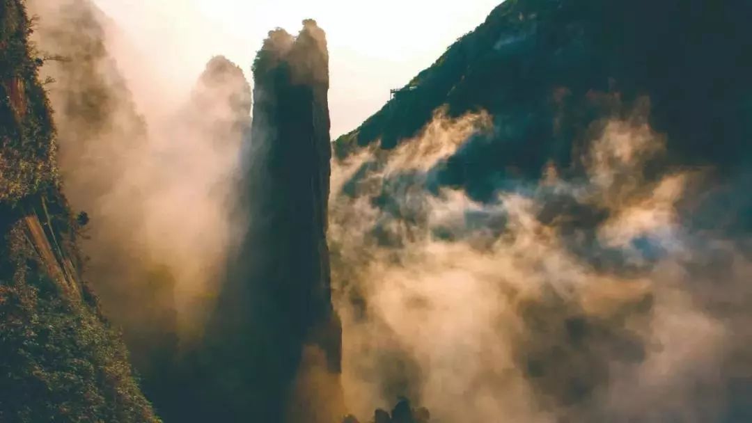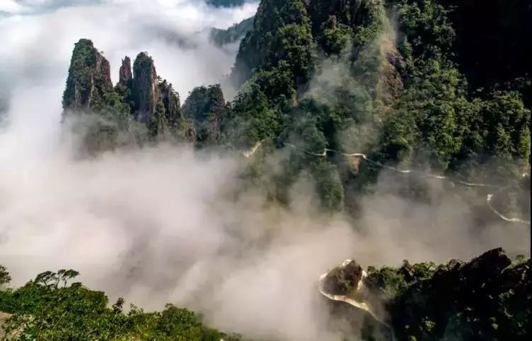 阴雨天,仙气氤氲,可见山间云海缭绕