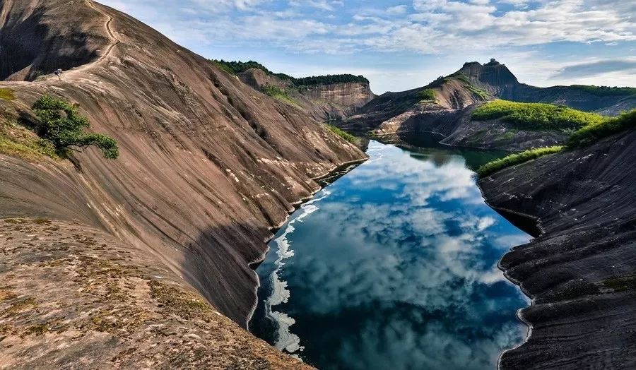 一个绝对值得一去再去的好地方,经典的丹霞地貌,山水犬牙交错,奇形怪状,不是鬼斧神工,而是上天的刻意而为之!惊而不险的悬崖陡壁,绝对惊险刺激!山很青,水很秀!很原始,很安逸!